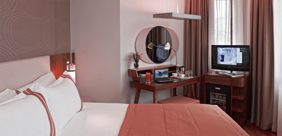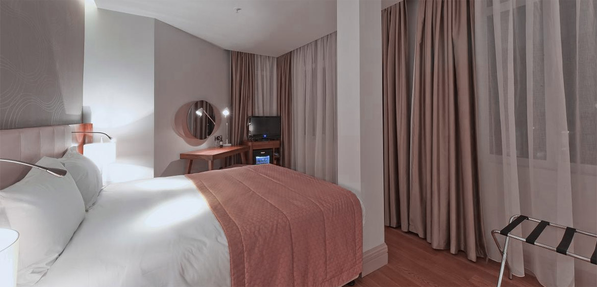 Designed with maximum guest privacy and comfort in mind, the Master Suite comes with a fully separate modernly decorated lounge area adjoined by a spacious room with a king-size bed. Equipped with bath tub and shower fixtures, all master suites are air-conditioned and have a flat-screen TV with international channels, free WiFi access, mini-fridge, safe, and spacious wardrobe. All rooms lead onto an open balcony style corridor with a view of the hotel courtyard. Located on the first floor of the east wing of the hotel, these suites face the swimming pool and patio area of the hotel.